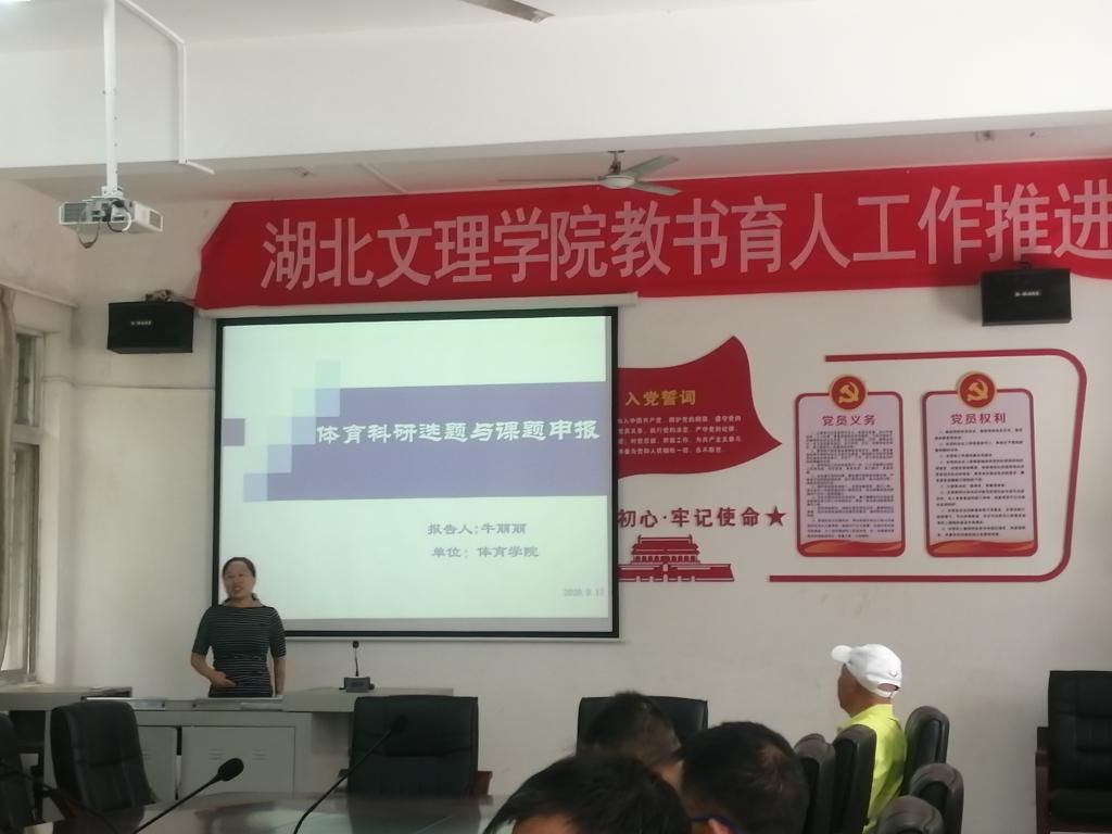 一楼会议室做《体育科研选题与课题申报》专题培训讲座。全院四十多名教师参加了培训,会议由何忠院长主持。