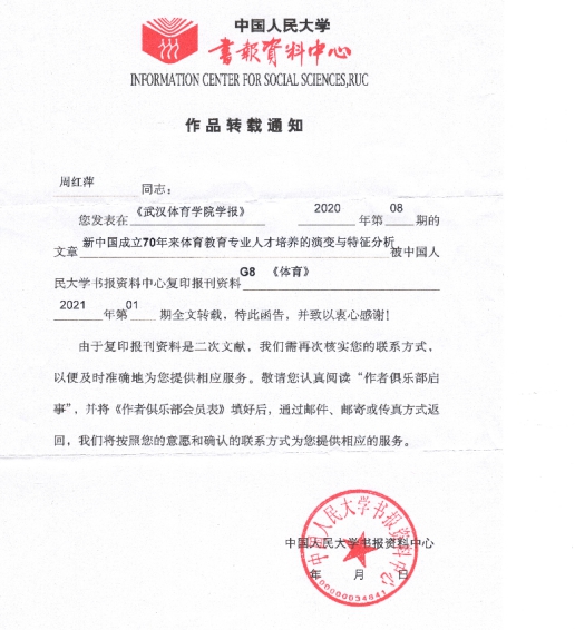 学报》2020年第8期)被人民大学复印资料G8《体育》2021年第1期全文转载。