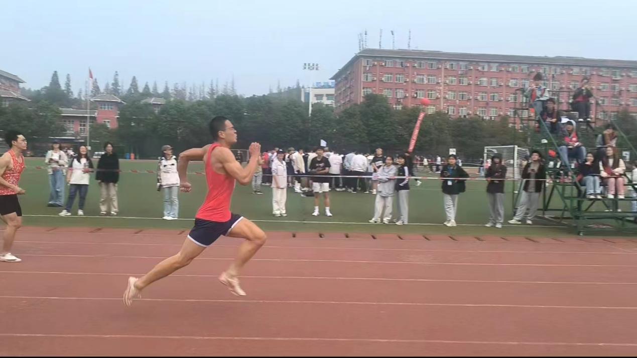短跑运动员涂正阳、唐祥东和刘文豪以惊人的速度冲刺,分别刷新了100米、200米和400米的校纪录。他们每一次的迈步都凝聚着无数的汗水与努力,完美诠释了对速度的极致追求与坚定信念。