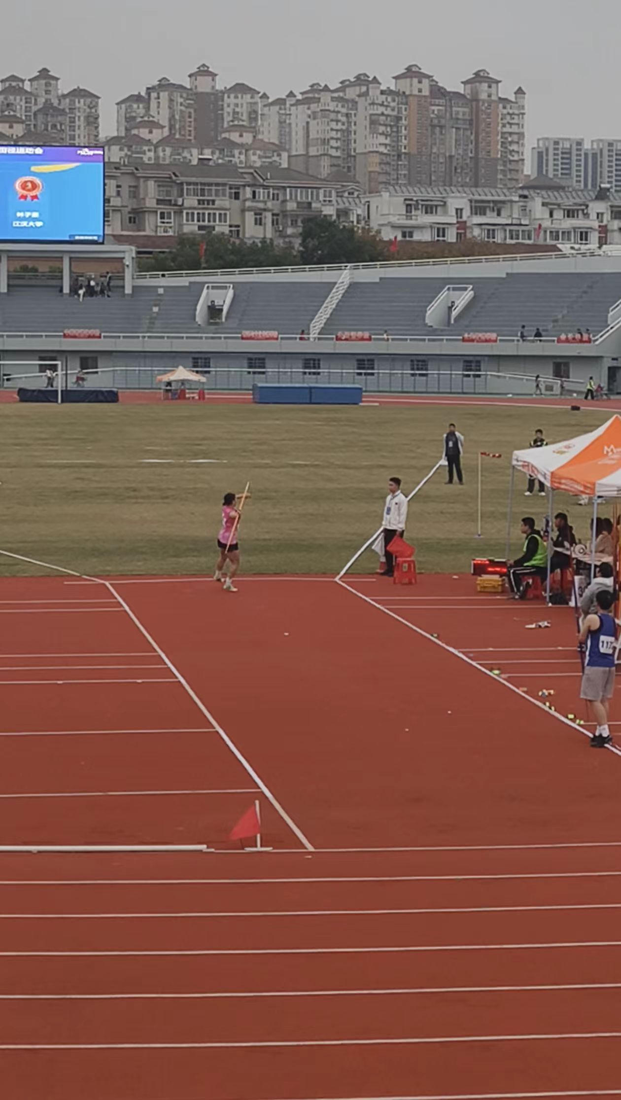 选手同样表现出色。男子标枪运动员站在投掷区,眼神坚定,集中全身力量奋力一掷,最终获得第六名。女子标枪运动员也不遑多让,紧随其后取得了第七名的好成绩。他们在力量与技巧的完美结合中,展现出了持续进步的实力,为学校在投掷项目上增添了一抹亮色。