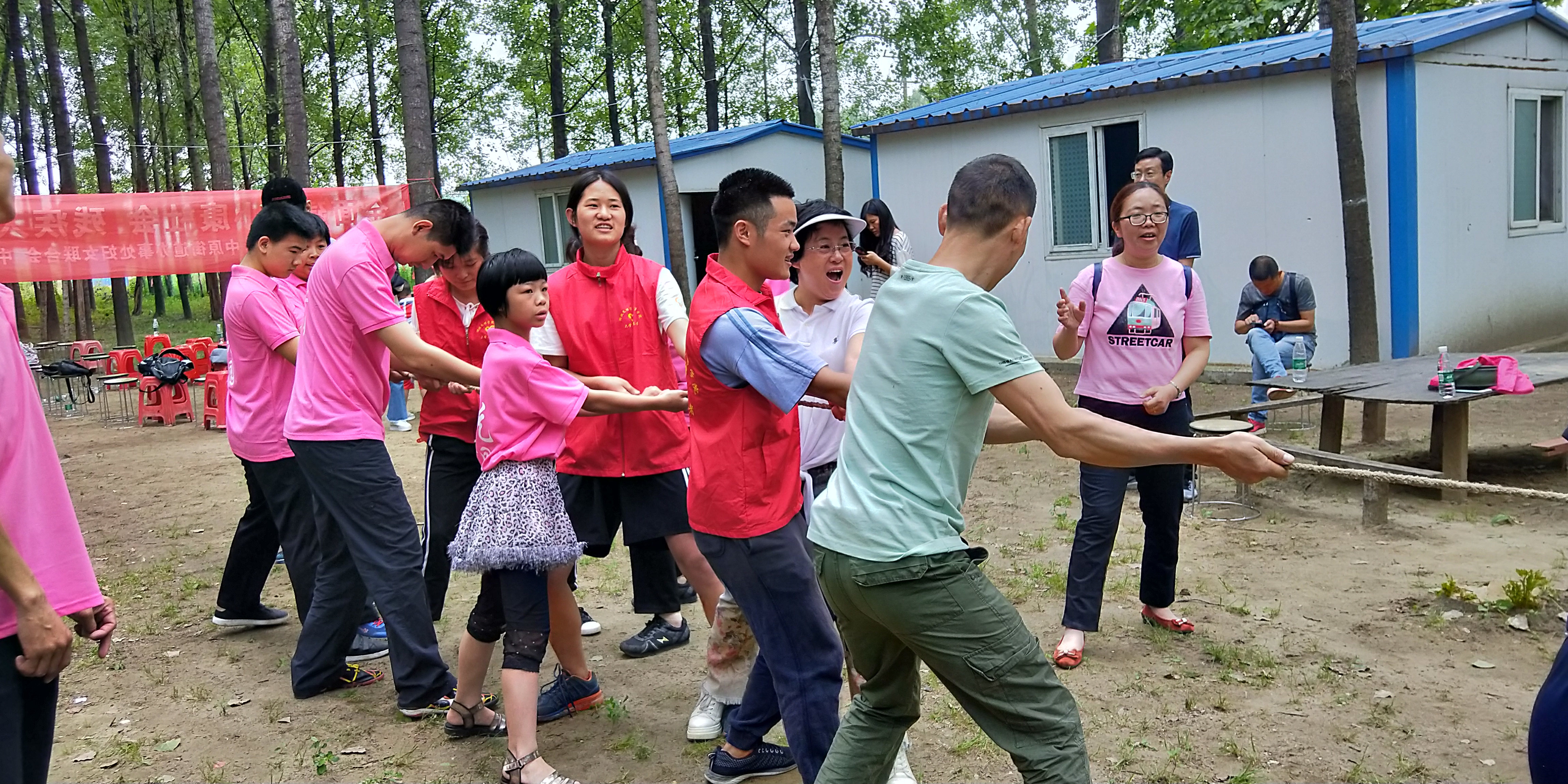 活动现场,阳光家园的孩子们进行模仿秀、电子琴、赛马以及排舞表演,并和政协委员、青年志愿者一起表演手语舞:感恩的心。接着,志愿者与孩子们开展了“拔河”、“三人四脚”、“跳长绳”等互动游戏,孩子们玩得很开心,纷纷表示,感谢社区和大学生志愿者对他们的关爱。活动最后,大家齐聚一堂包饺子聊家常,欢声笑语回荡在阳光家园。