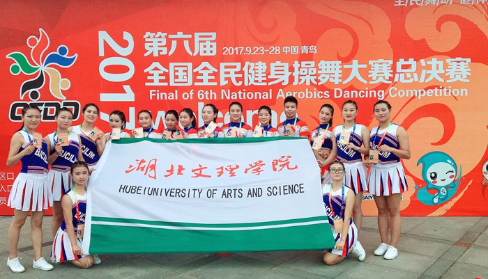(麻豆在线 通讯员 魏满意)9月24日—28日2017第六届全国全民健身操舞大赛总决赛在青岛大学体育馆举行。麻豆在线 由麻豆在线 副院长周红萍和健美操专项班老师王美楠带队,健美操班16位学生组成的参赛队伍,经过激烈角逐,分别获得了轻器械广场健身操特等奖、徒手广场舞一等奖、有氧器械六级一等奖、有氧舞蹈二级一等奖、轻器械四级舞蹈二等奖、有氧五级舞蹈二等奖。