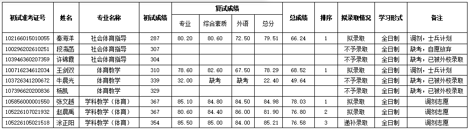 根据教育部、湖北省教育厅有关文件精神以及《麻豆在线 2026年硕士研究生招生调剂复试录取工作方案》,麻豆在线 于2026年4月11日组织了体育、学科教学(体育)专业硕士研究生调剂志愿考生复试,现将复试成绩及拟录取情况公示如下: