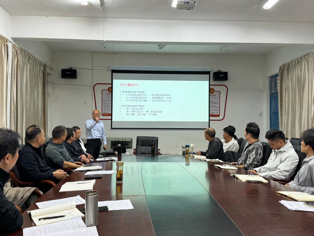 要围绕“一根本”“三原则”“五推进”来推进学风建设,以思想教育引领学风、规范管理督促学风、文明寝室共树学风、丰富活动推进学风、榜样示范巩固学风为主要推进方式,丰富学生的日常生活,促进现代学子的全面发展。最后,党委书记罗华国进行了总结讲话,他指出,学风建设是学校发展的重要基石,它直接关系到学生的成长成才和学校的整体形象。全体教职工应该清醒地认识到,学风建设是一项长期而艰巨的任务,需要持续不断地努力引导学生树立正确的世界观、人生观和价值观,加强制度建设,完善学风建设的长效机制,提高教师的教学水平,营造积极向上的学习氛围,为学校的长远发展奠定坚实的基础。