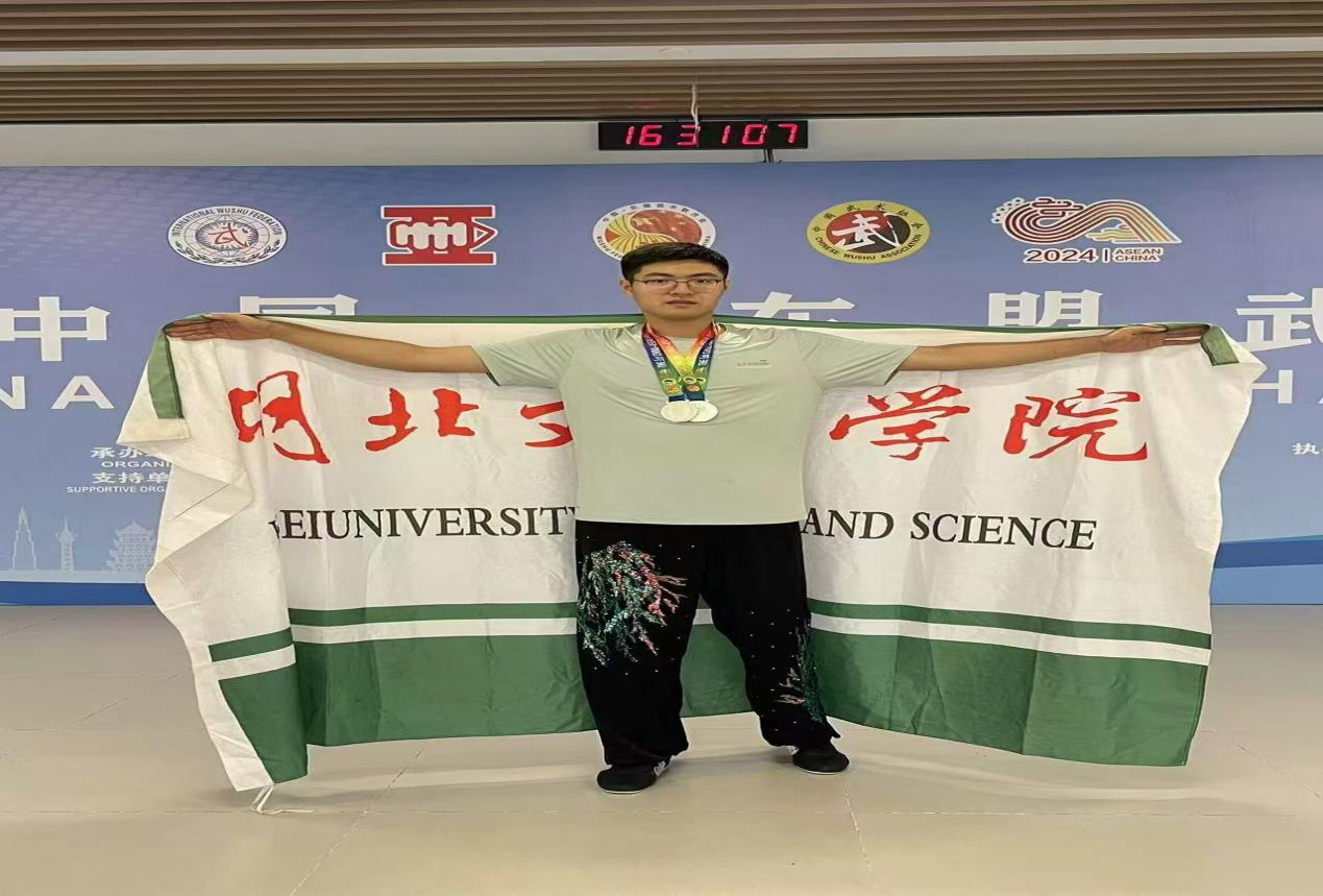 代表队队员赵家望同学分别在男子甲C组单器械和劈挂两个项目中荣获银牌。