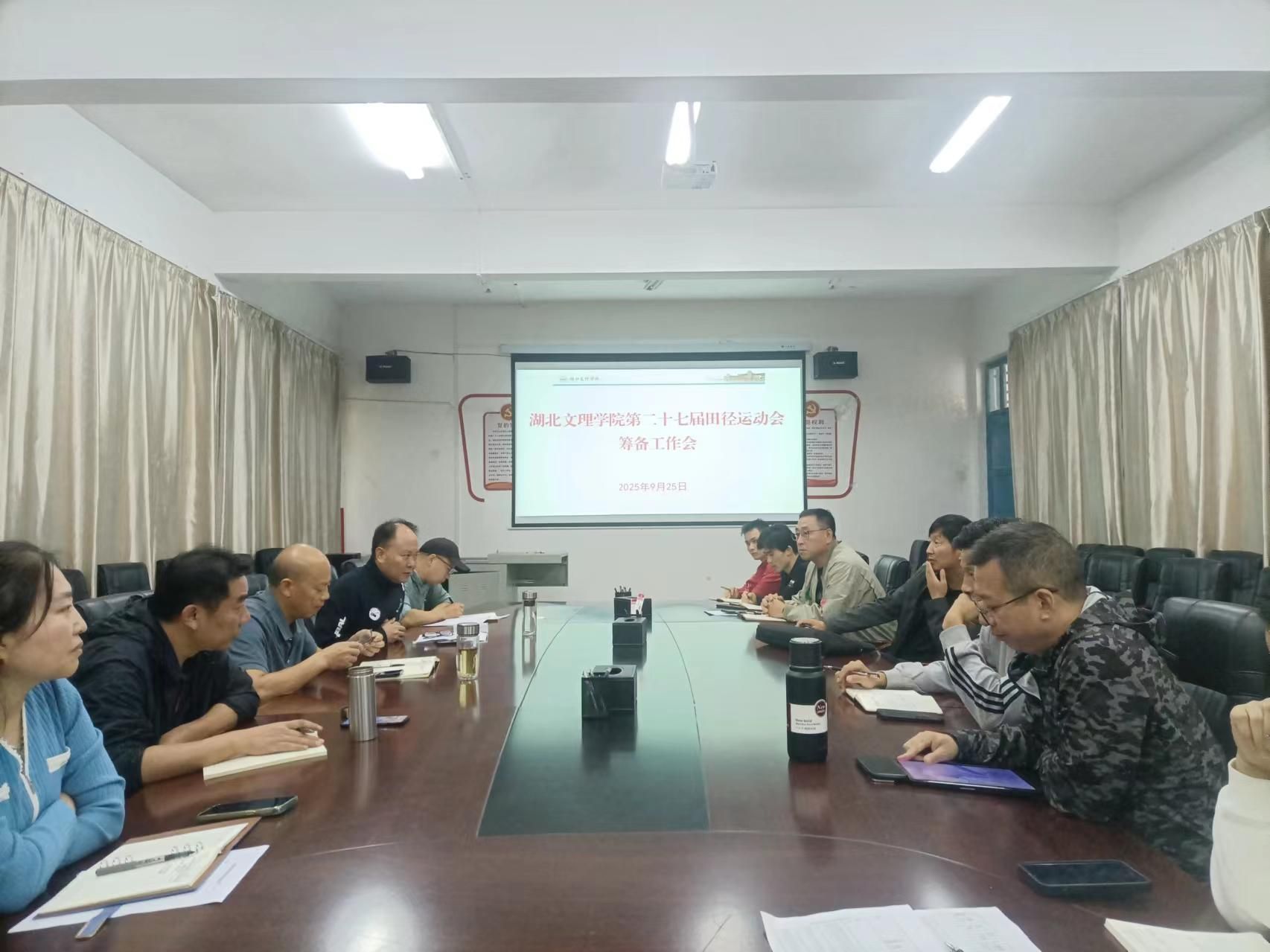 张华江指出,每年一次的田径运动会是学校大规模群体活动,通过此项活动,能够营造积极向上的体育运动校园氛围,促进全校学生身体素质提升,增进师生之间的交流。他要求,各位负责人要协同工作,明确职责,确保工作有序推进。接着,张华江就开幕式的组织、表演、进场、颁奖、裁判培训等进行了具体安排。