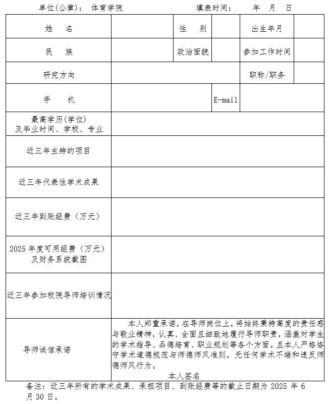 计划2025年招收研究生的具有体育专硕导师资格的在职教师、校外导师。